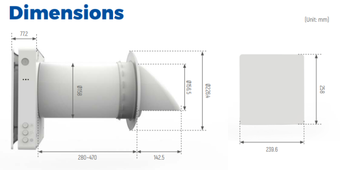 - Easy to install only requires through the wall installation with a 6 inch duct